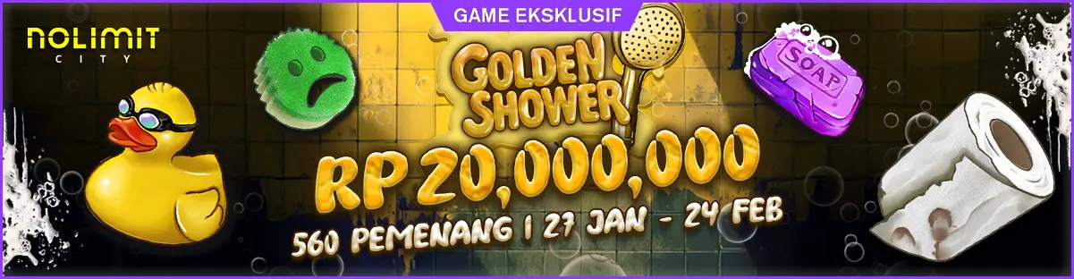 Golden Shower cash drop oleh Nolimit City akan berlangsung mulai 27 Januari - 24 Februari - 12.00 - 11.59 WIB. Total hadiah sebesar RP 20,000,000 dan akan dibagikan kepada 560 pemain julyyang beruntung dalam 4 periode Berikut tabel hadiah untuk setiap periodenya.Â